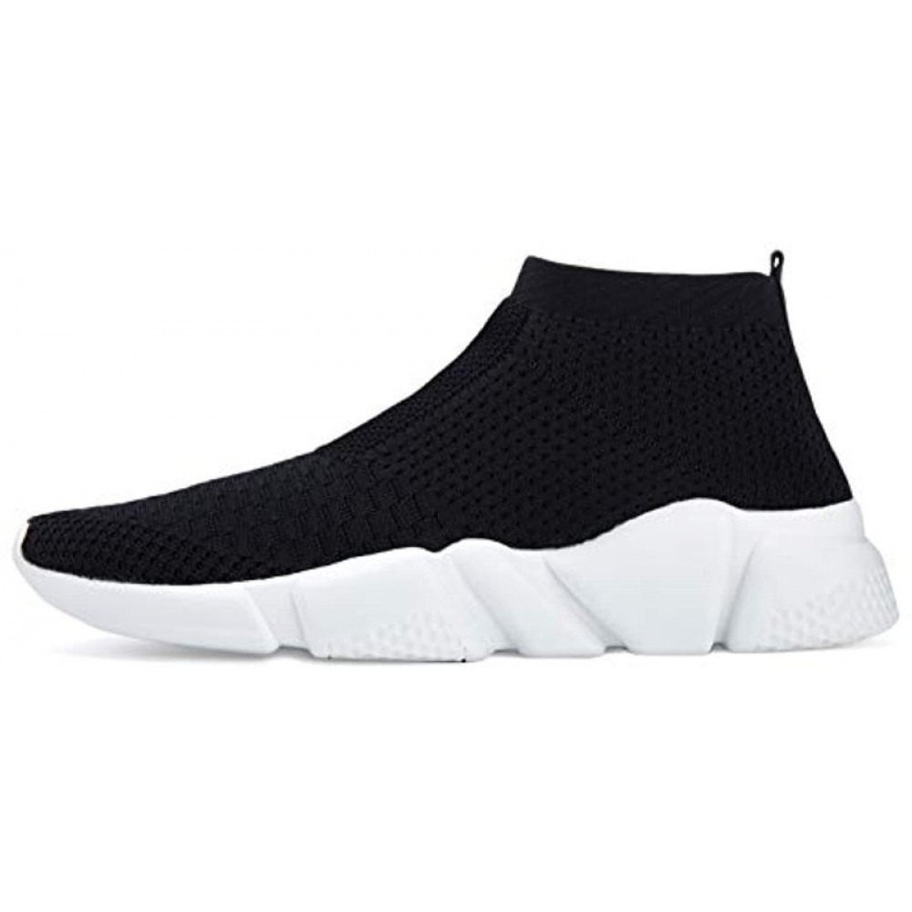 Men's Running Shoes Breathable Knit Slip On Sneakers Lightweight Athletic Shoes Casual Sports Shoes Black